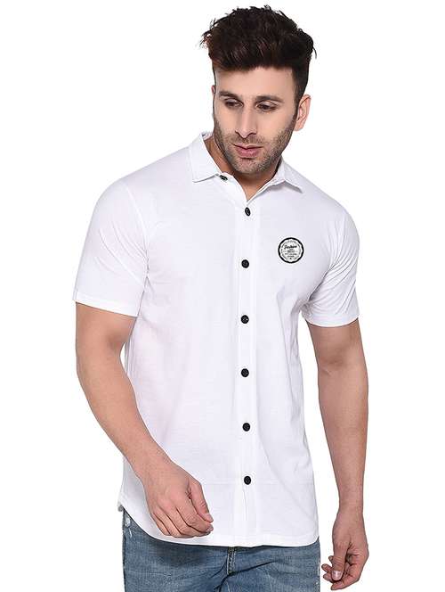 white cotton blend casual shirt