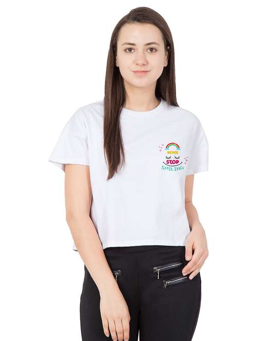 - » women round neck chest print crop top