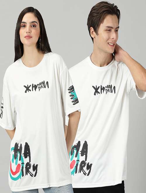 - » white cotton blend printed couple t-shirt