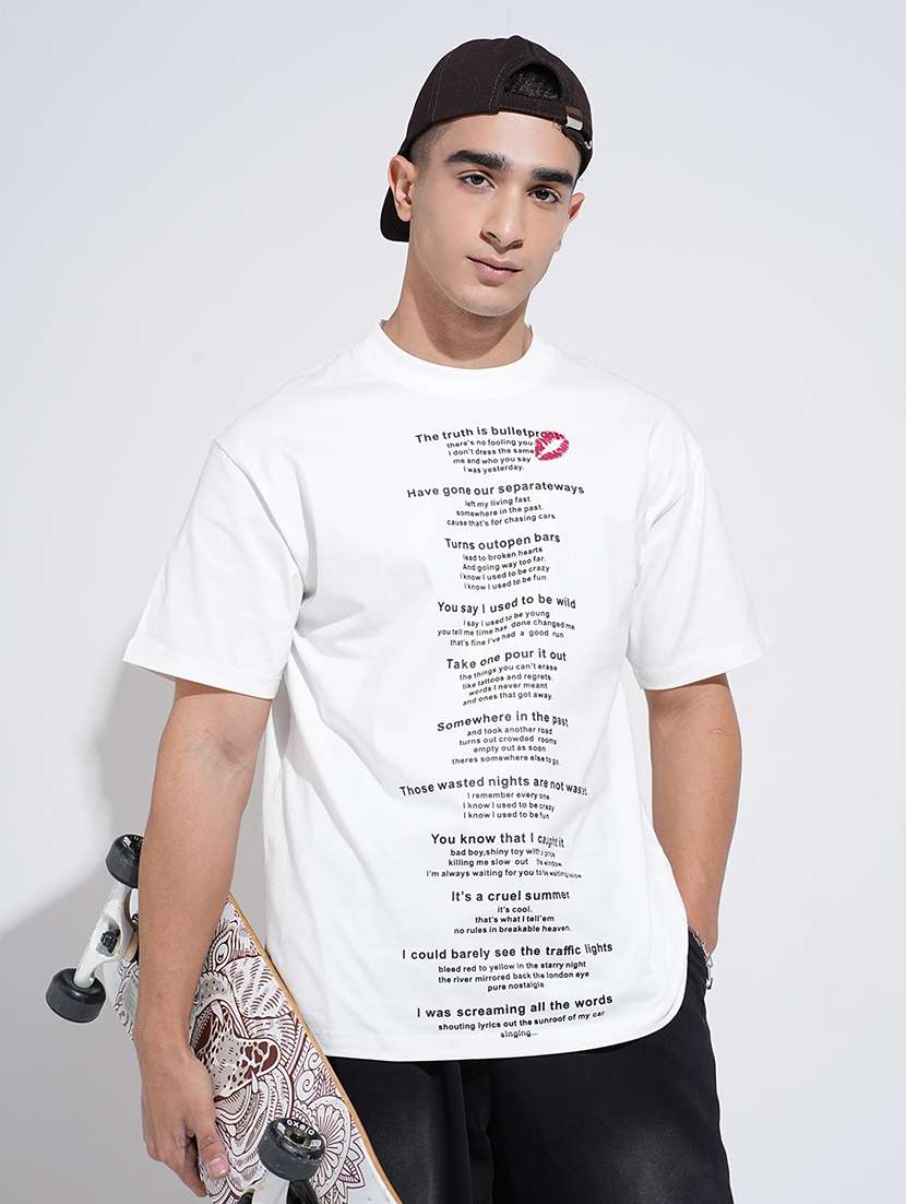 SHOWOFFFF Edition Men's Typography White Short Sleeves Round Neck Relaxed Fit T-Shirt