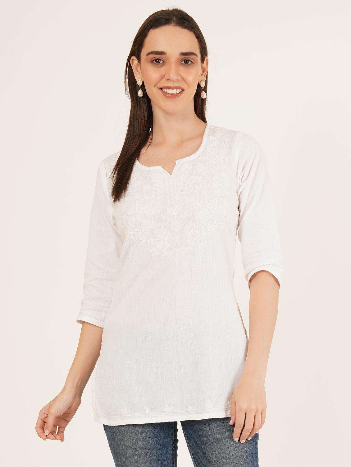 women embroidered three quarter sleeve straight kurti