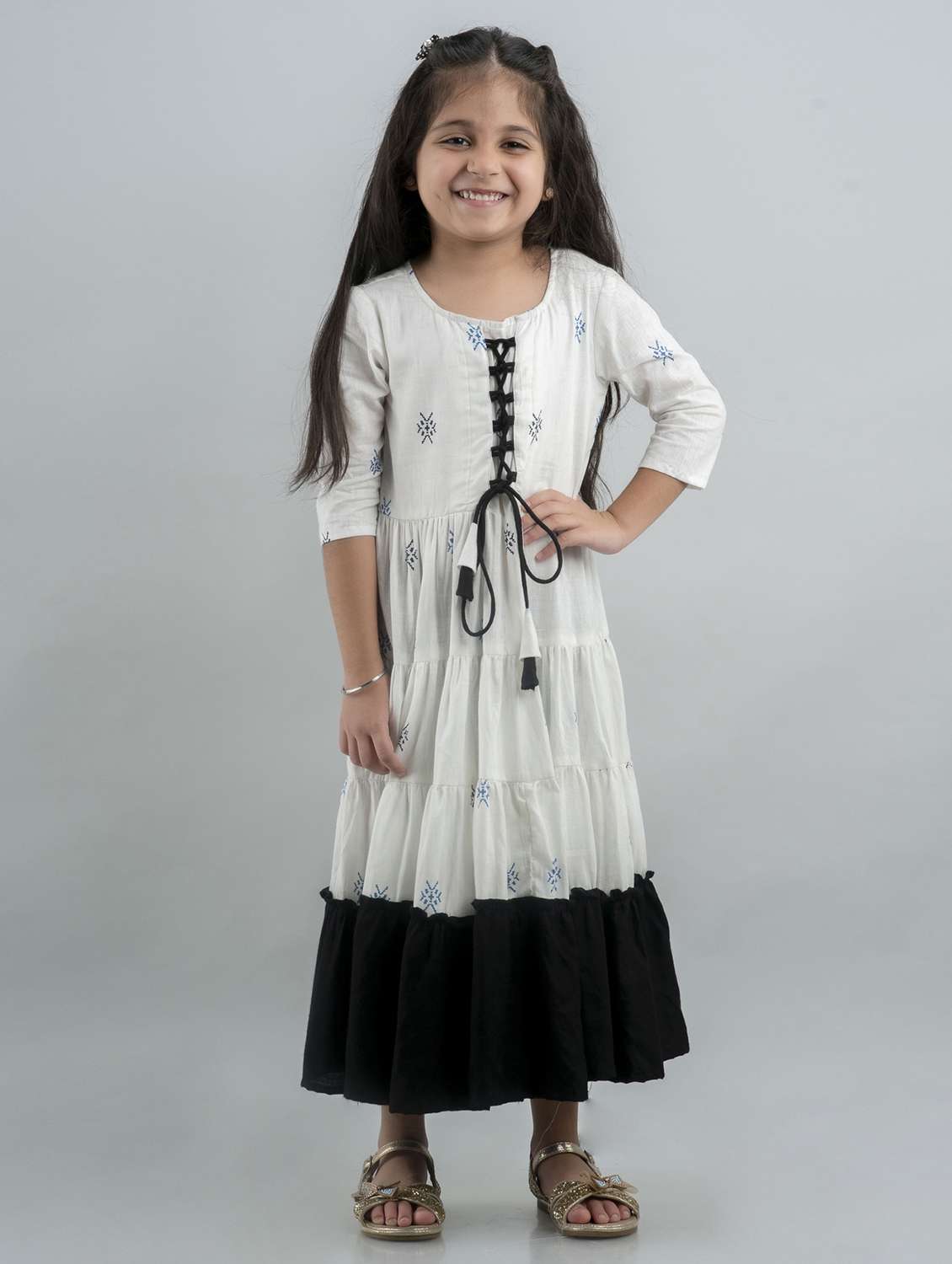 girls printed three quarter sleeve tiered gown