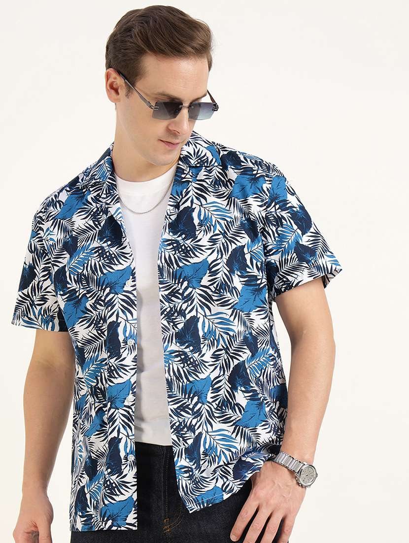 men printed cuban collared short sleeve shirt