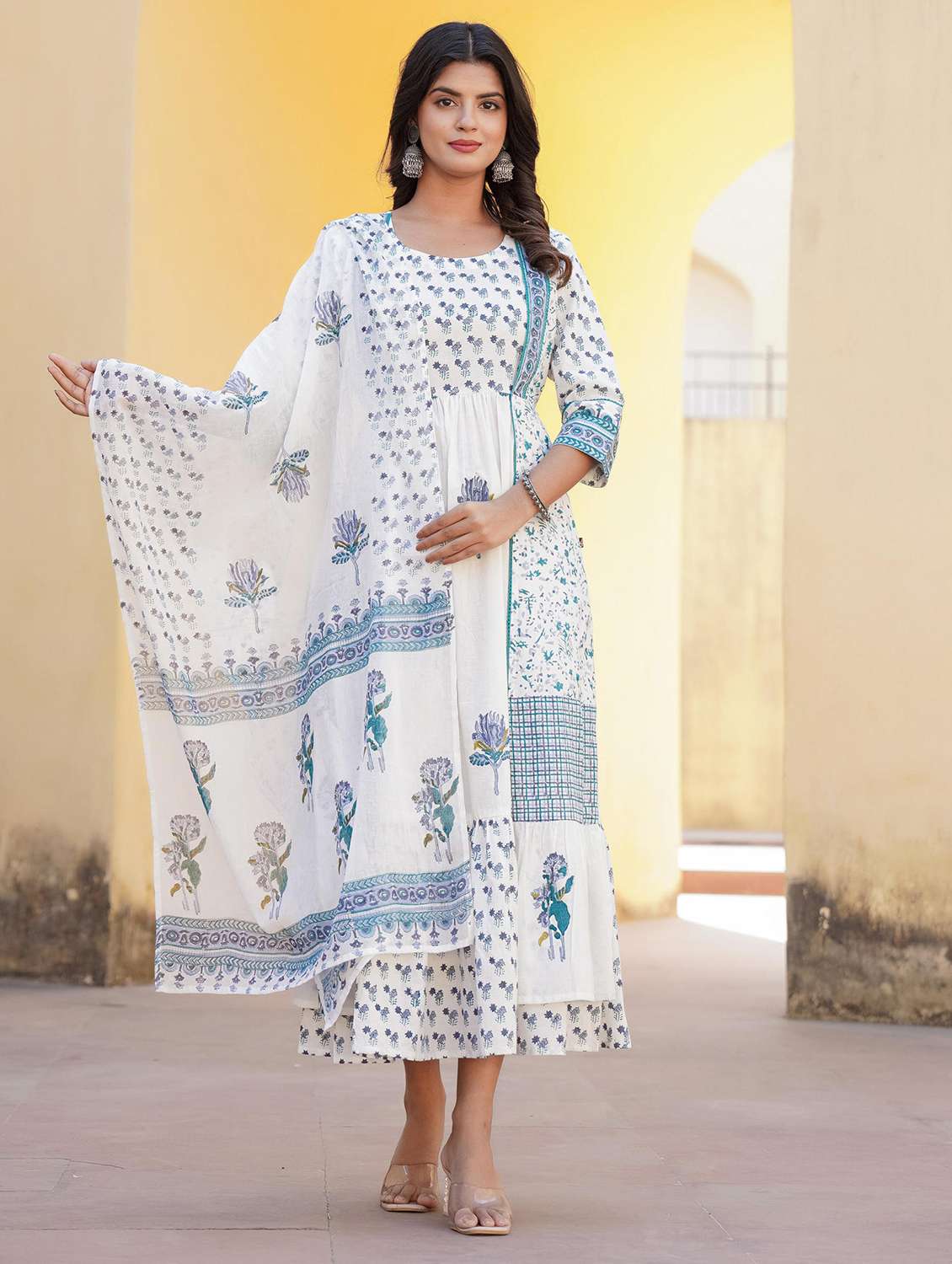 • Find gorgeous sets of ethnic wears in trending designs in white colors suitable for casual wear of occasions.