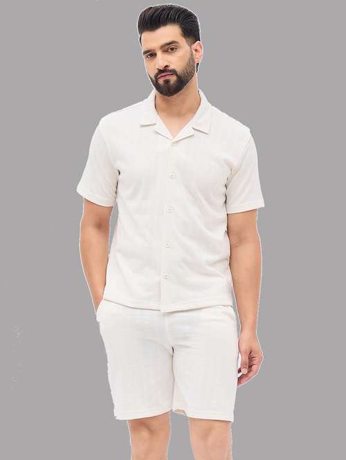 Men’s Cuban Collar Co-ord Set Textured Button-Up Shirt & Shorts Combo Summer Smart Casual Wear