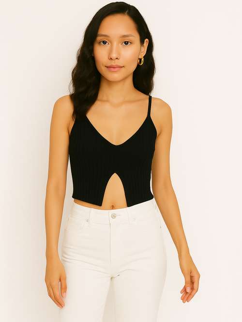 This white ribbed crop top is a must-have for modern wardrobes. Made from soft and stretchy cotton lycra fabric, it features a flattering deep V-neckline, delicate spaghetti straps, and a trendy front cut-out detail. Perfect for warm weather, this sleeveless crop top for women offers a body-hugging fit that highlights your silhouette. Whether styled with high-waisted jeans, skirts, or shorts, this summer crop top transitions seamlessly from day to night. Ideal for casual outings, vacation looks, or even layered streetwear fashion, it’s a versatile piece. Add this white fitted top, perfect for chic minimalist fashion, to your collection today.