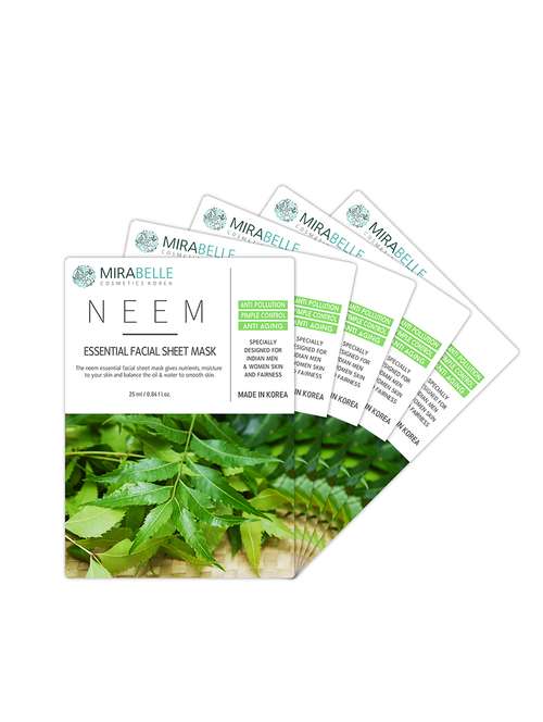mirabella neem essential facial sheet mask (pack of 5)