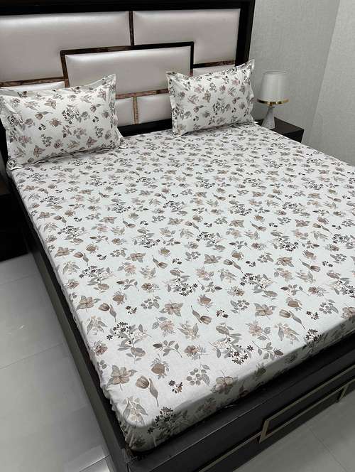 - » floral printed tc fitted king-sized bedsheet with 2 pillow covers