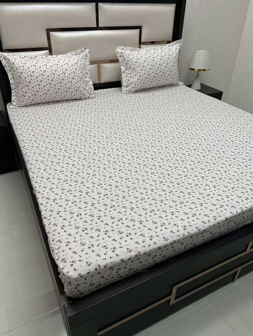 - » floral printed tc fitted king-sized bedsheet with 2 pillow covers