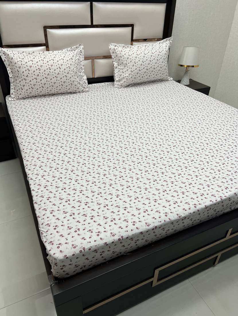 printed tc fitted king-sized bedsheet with 2 pillow covers