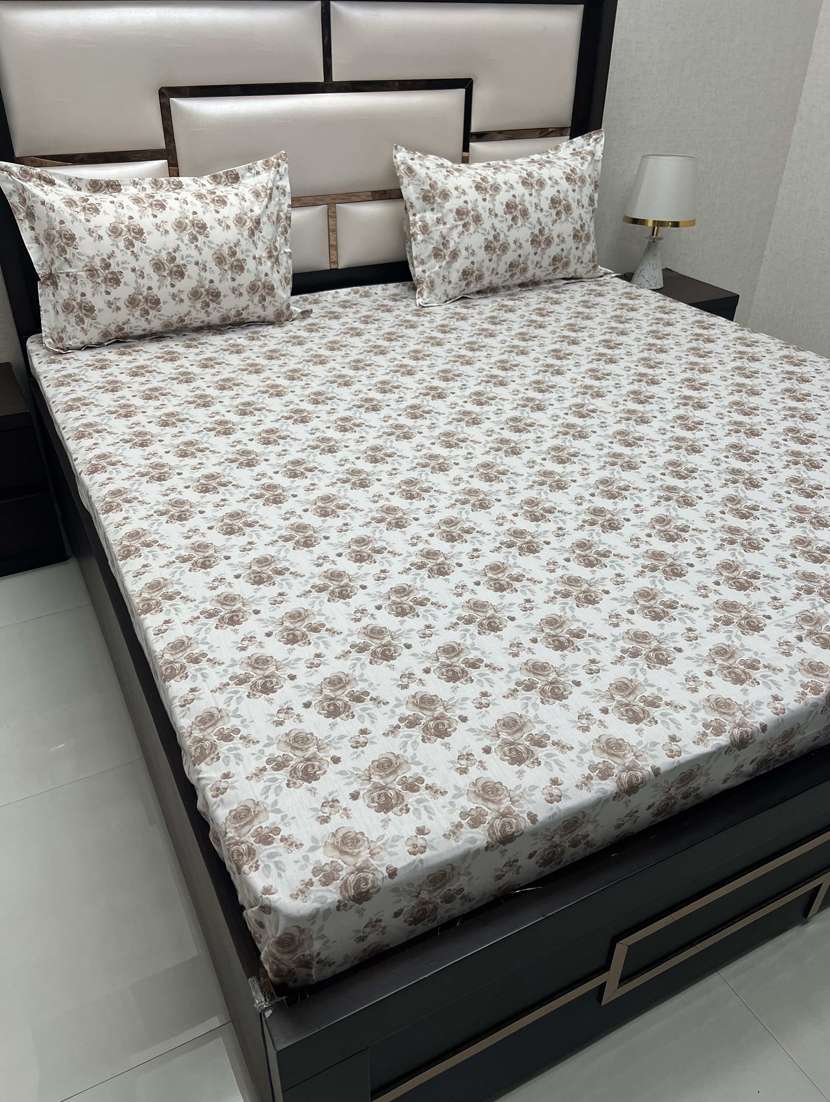 printed tc fitted king-sized bedsheet with 2 pillow covers