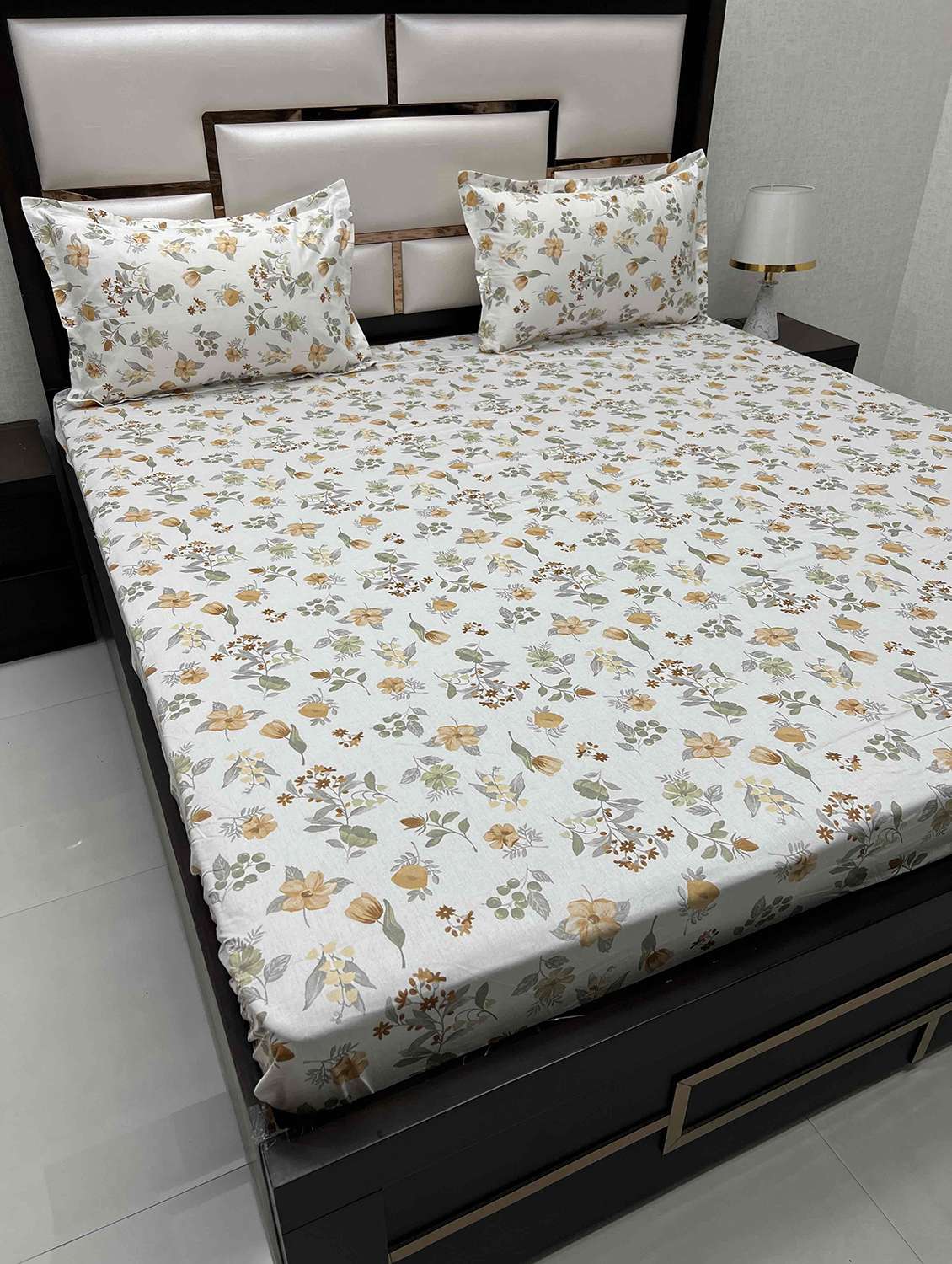 printed tc fitted king-sized bedsheet with 2 pillow covers
