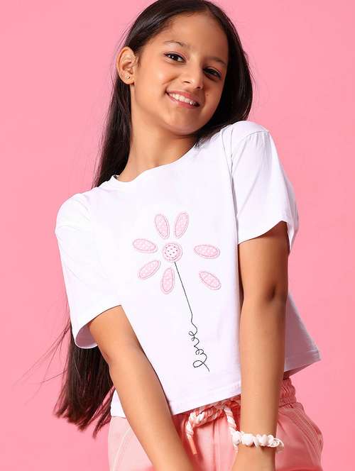 - » girls front print round neck t-shirt