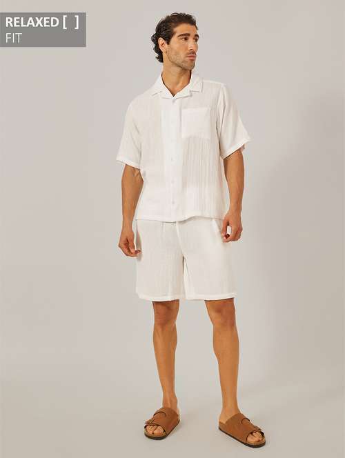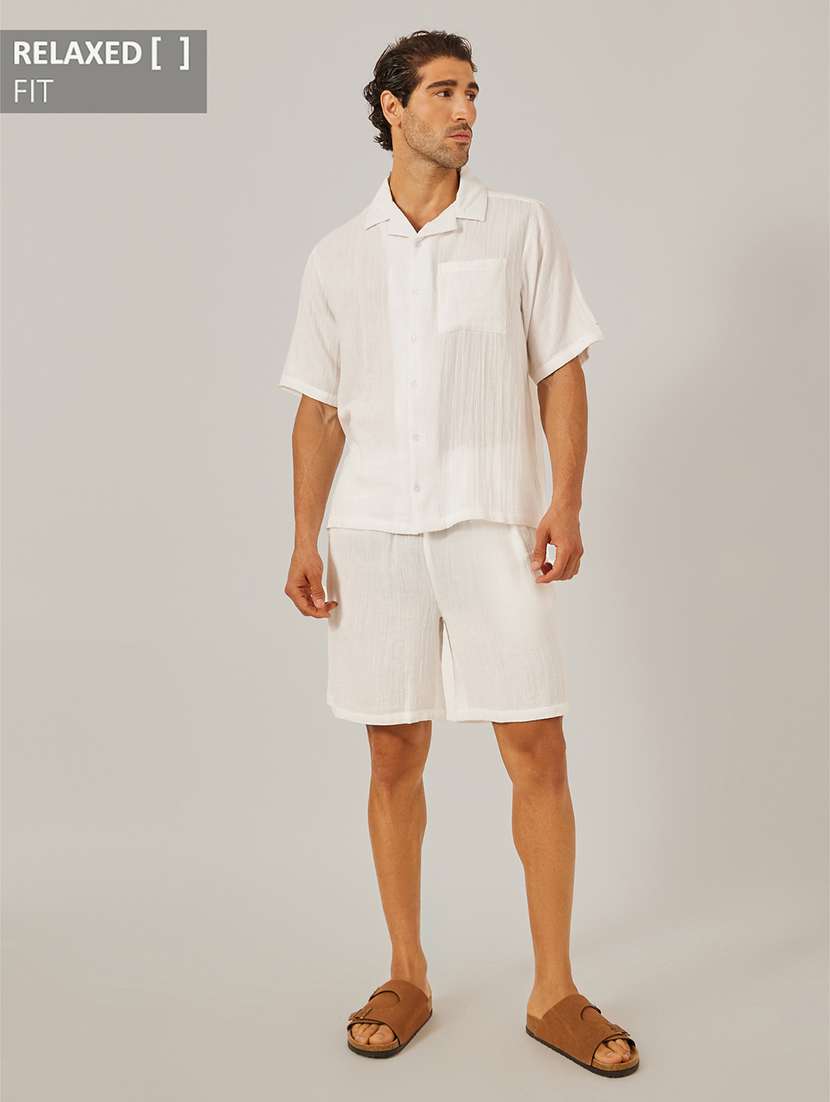 men solid short sleeve shorts & shirt co-ord set - 22219999 - Very Small Image - 1