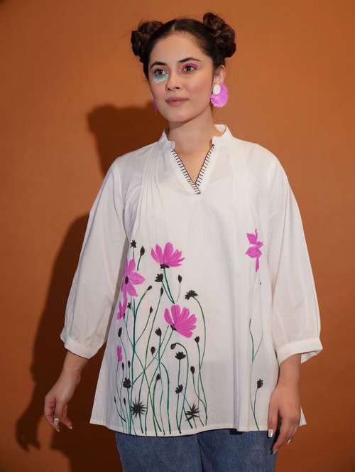 - Opt for this top made up of cotton material and get it in a varied neck design.
