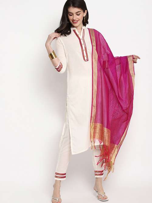 • Find gorgeous sets of ethnic wears in trending designs in cream colors suitable for casual wear of occasions.