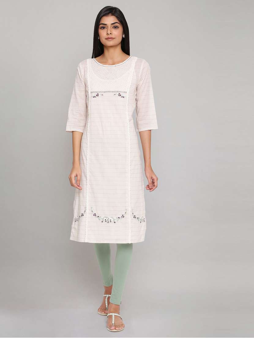 multi coloured embroidered kurta pant set