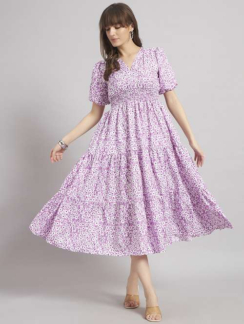 women floral puff sleeve tiered dress - 22308203 - Very Small Image - 1