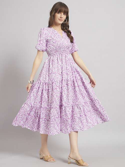 women floral puff sleeve tiered dress - 22308339 - Very Small Image - 1