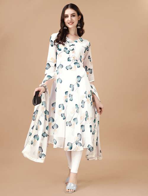- Find gorgeous sets of ethnic wears in trending designs in white colors suitable for evening wear of occasions.