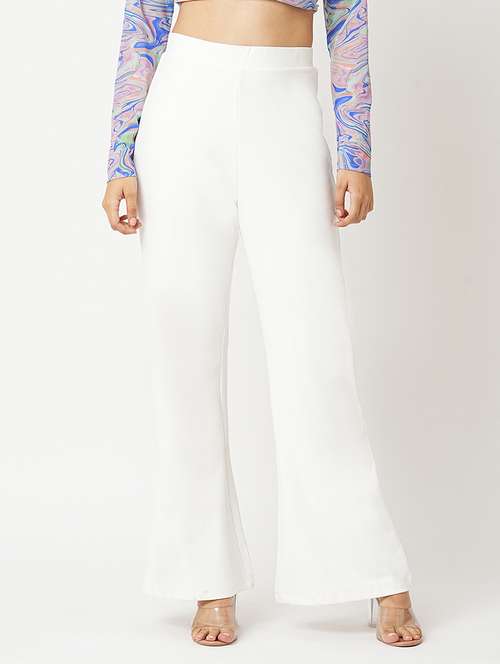 - » globus women white stretchable mid-rise wide flared fit treggings