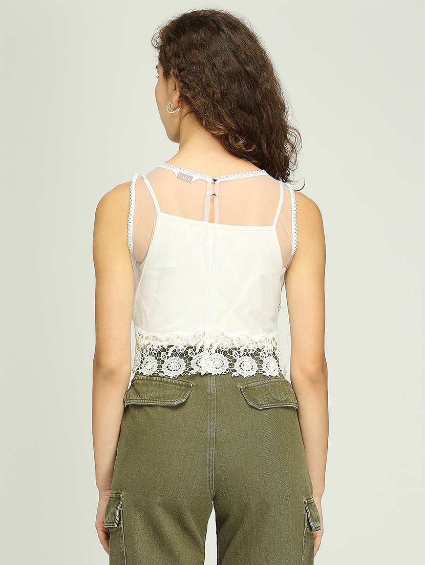 - » women laced sleeveless crop top