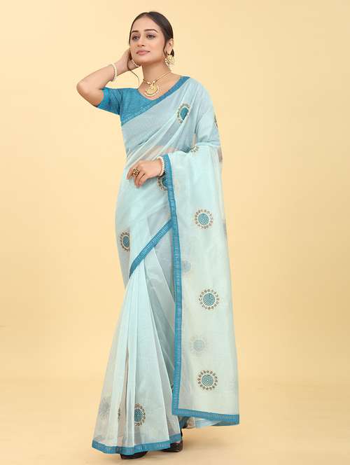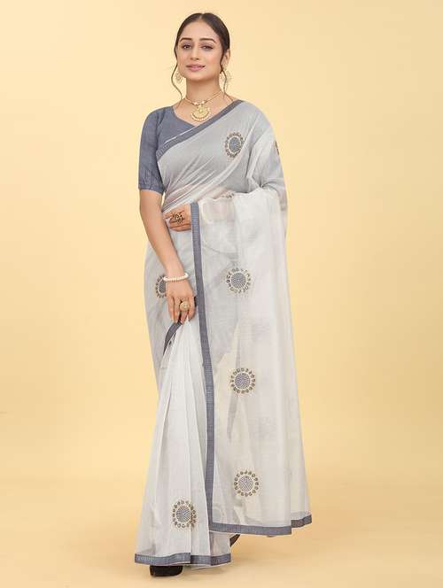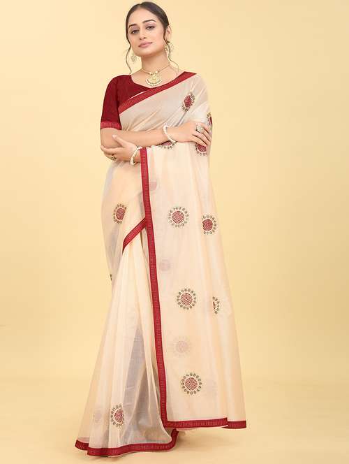 Saree Color :- Off White, Saree Fabric :- Organza, Saree Work :- Thread Work & Net Saree, Set Contents :- Saree And Blouse WEIGHT : 250 gm, Occasion : Wedding, Festival, Casual, Bridal, Party, Wash Care : Dry clean only
