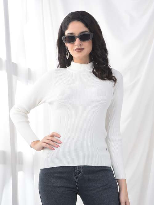 This elegant white turtle neck sweater for women is a stylish winter essential. Crimsoune Club offers classic design and cozy warmth, perfect for refined layering.