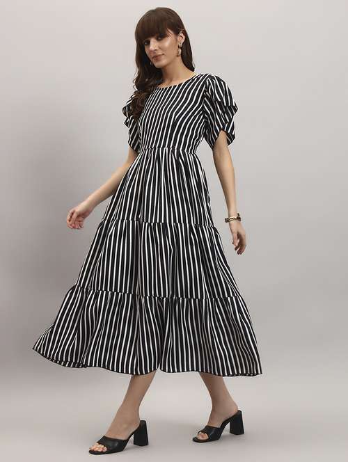 - » women striped round neck tiered dress