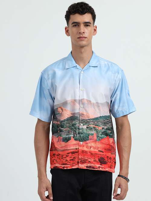 men printed cuban collared short sleeve shirt