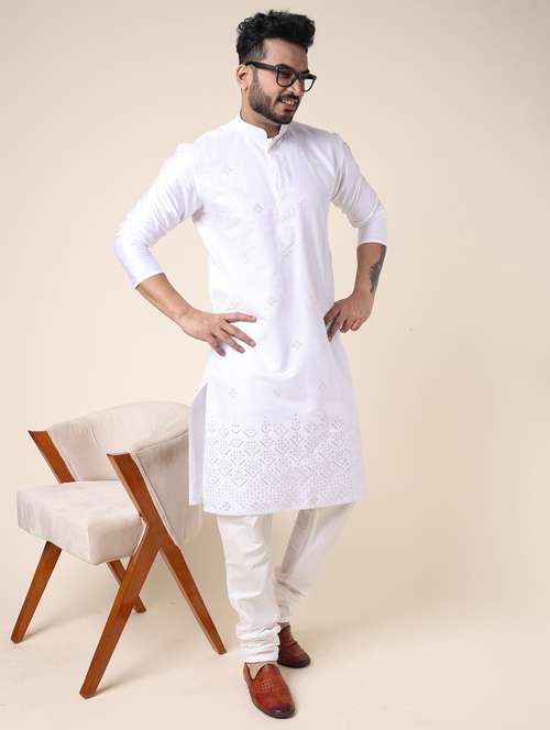 - » men solid with work long sleeve kurta churidar ethnic wear set
