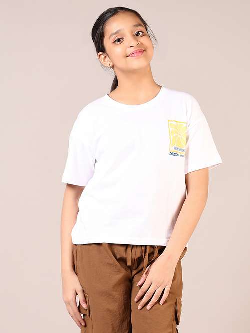 - » girls white printed round neck t-shirt