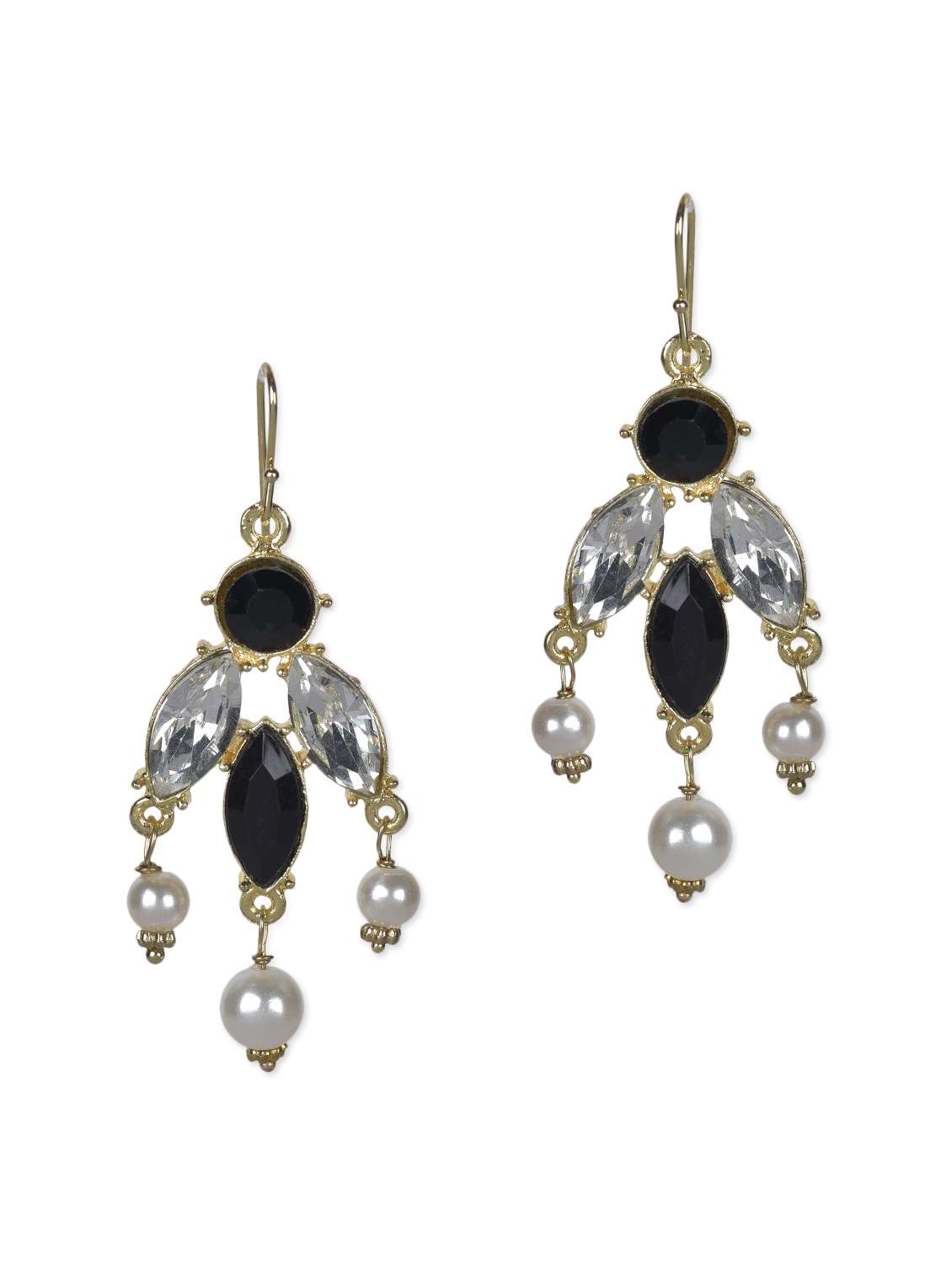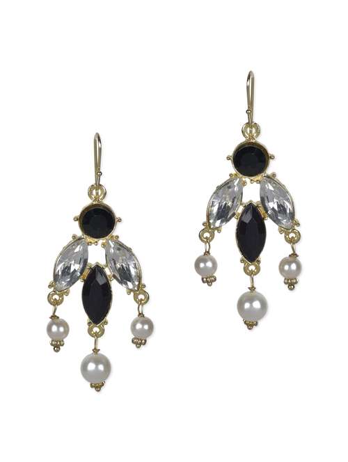 white stones pearled metallic drop earrings
