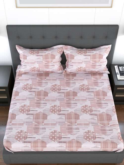 - » 180 tc rich cotton flat bedsheet for king size bed with 2 pillow covers | 108x108 inch | design geometric | color - peach |