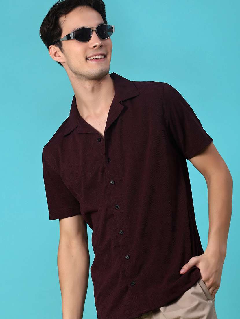 - » men self design short sleeve regular fit casual shirt