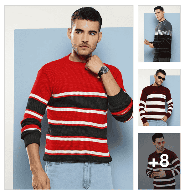men striped long sleeve regular fit pullover