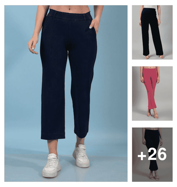women solid mid rise calf length trouser