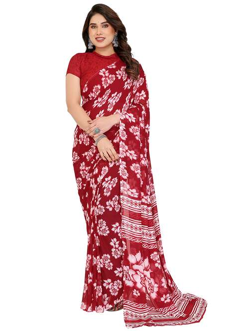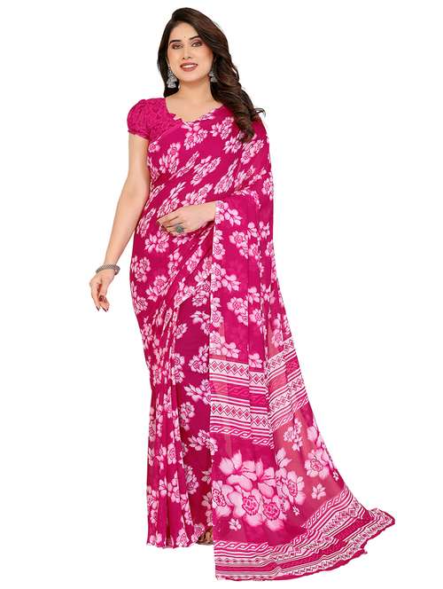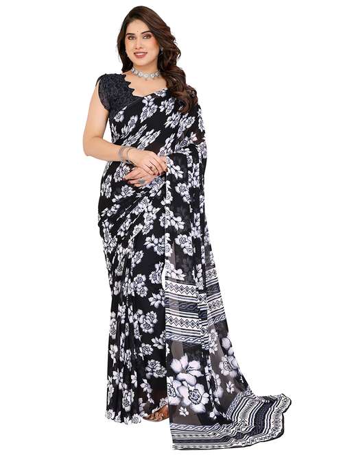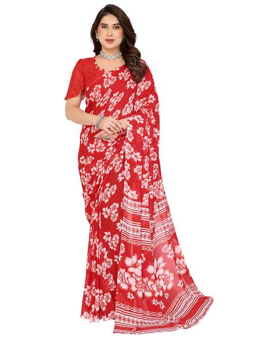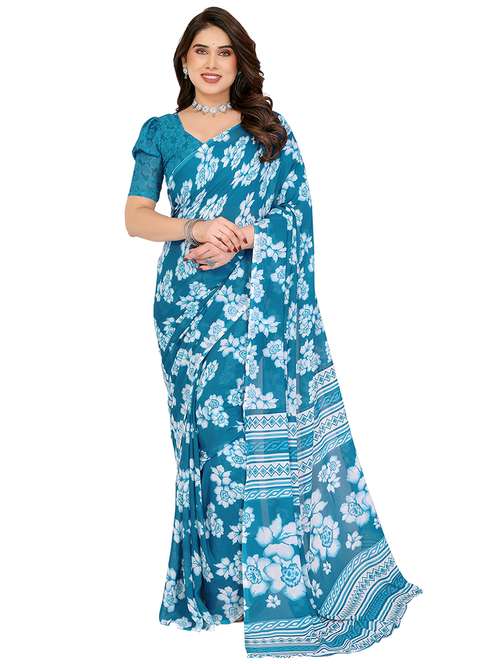 Add a splash of freshness to your wardrobe with this Fresh Bloom Floral Georgette Saree. Crafted from lightweight and breathable georgette fabric, this saree features a beautiful all-over floral print that exudes feminine charm. The soft drape and vibrant colors make it a delightful pick for daytime events, brunches, and festive gatherings. Styled with a complementing border, it blends elegance with everyday comfort.