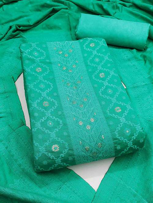 • Look ultra gorgeous in unstitched suits from Peachmode and grab these beautiful suits in turquoise colour.