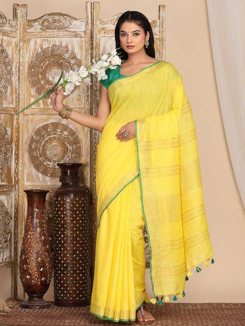 women solid with bordered saree with blouse