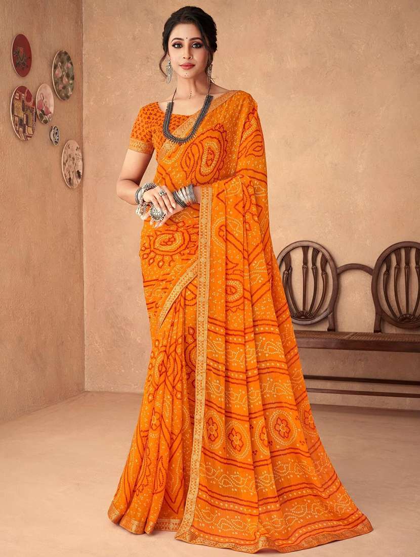 women lace bordered bandhani saree  - 21567391 - Very Small Image - 1