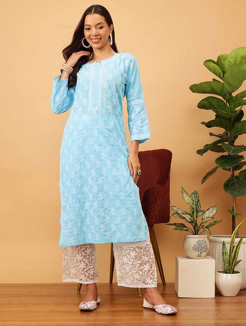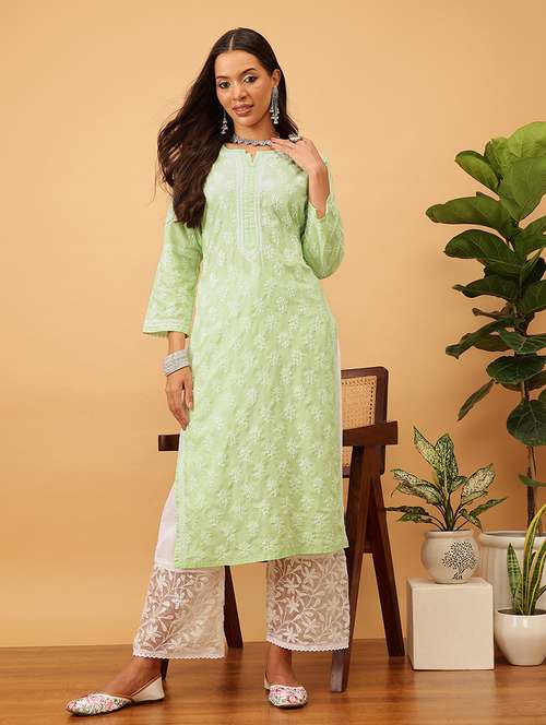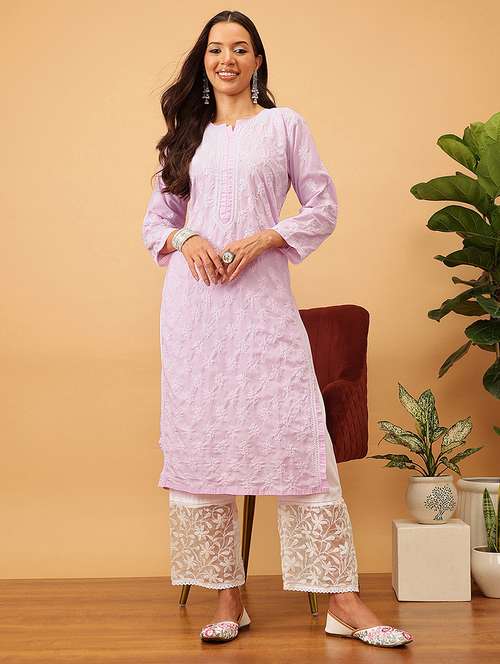 women solid with work long sleeve chikankari straight kurta - 22186321 -  Standard Image - 1 women solid with work long sleeve chikankari straight kurta - 22186321 -  Zoom Image - 1