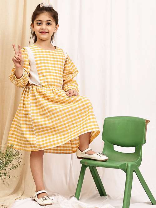 girls checkered puff sleeve a-line dress
