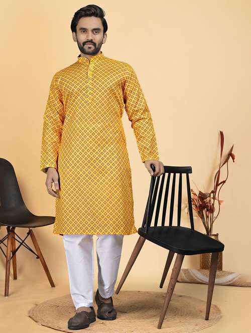 - » men printed mandarin neck long kurta