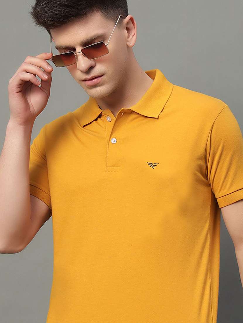 Solid Yellow Polo Neck Regular Fit T-Shirt