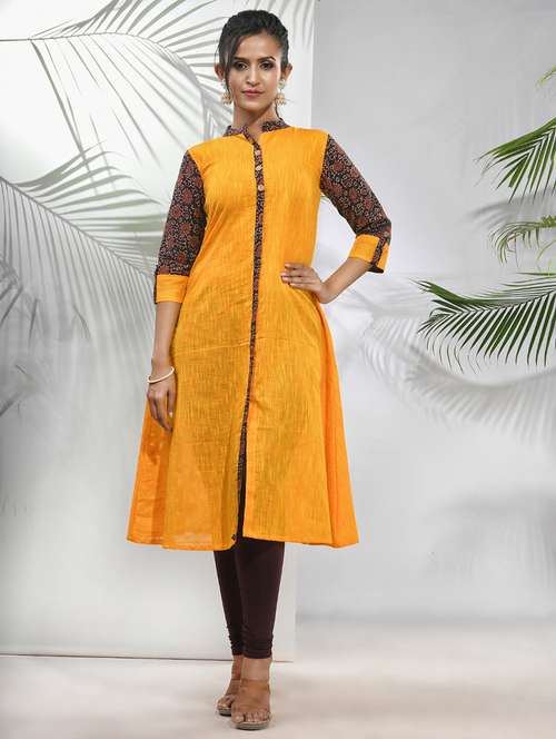 - Grab this beautiful kurta made up of cotton fabric featuring mandarin collar neck designs.