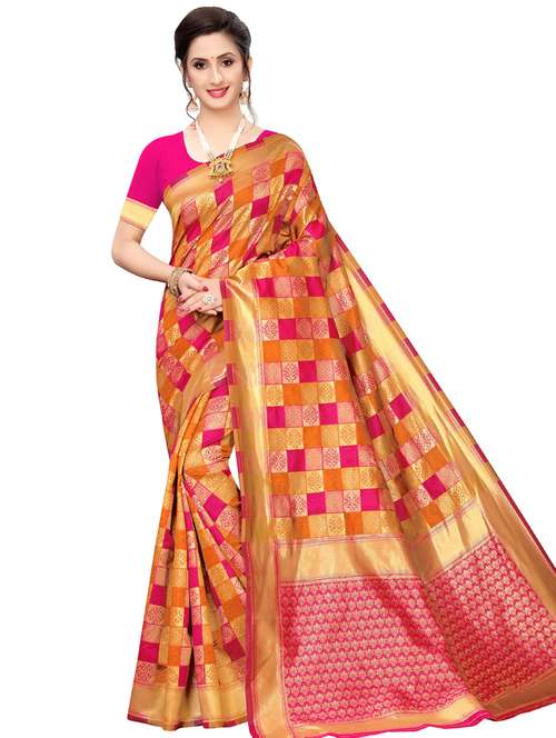 checkered banarasi saree with blouse - 16925555 - Very Small Image - 1
