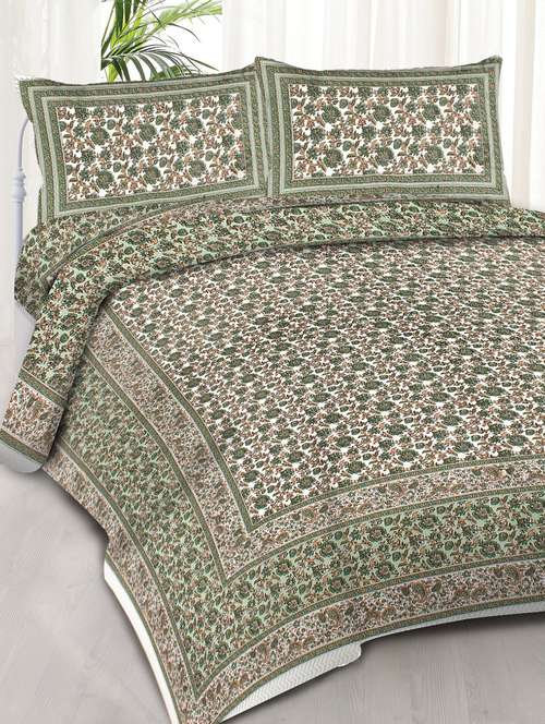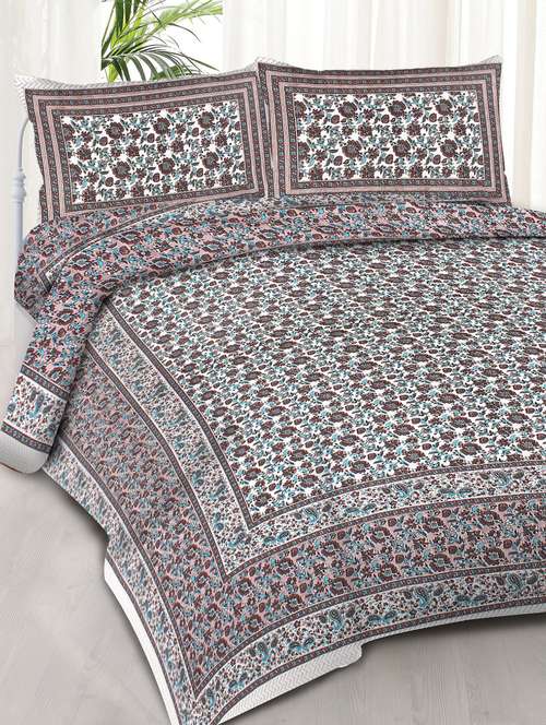 - » carry border printed 100% cotton pigment double bedsheet with pillow covers