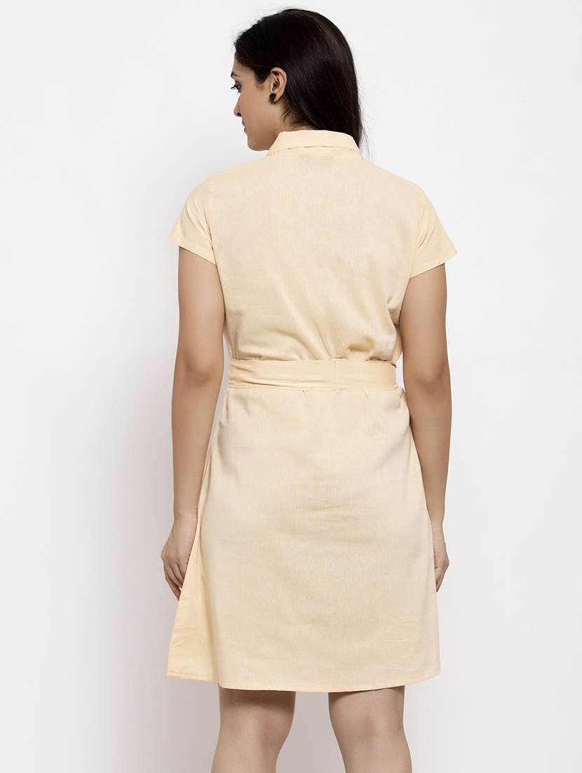 Enchanted Drapes Yellow Solid A-Line Cotton Women's Dress