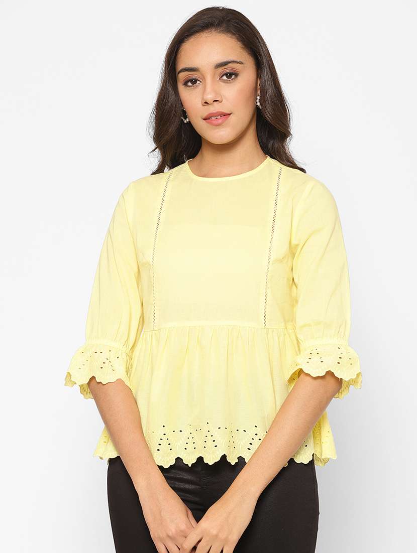 round neck solid peplum top